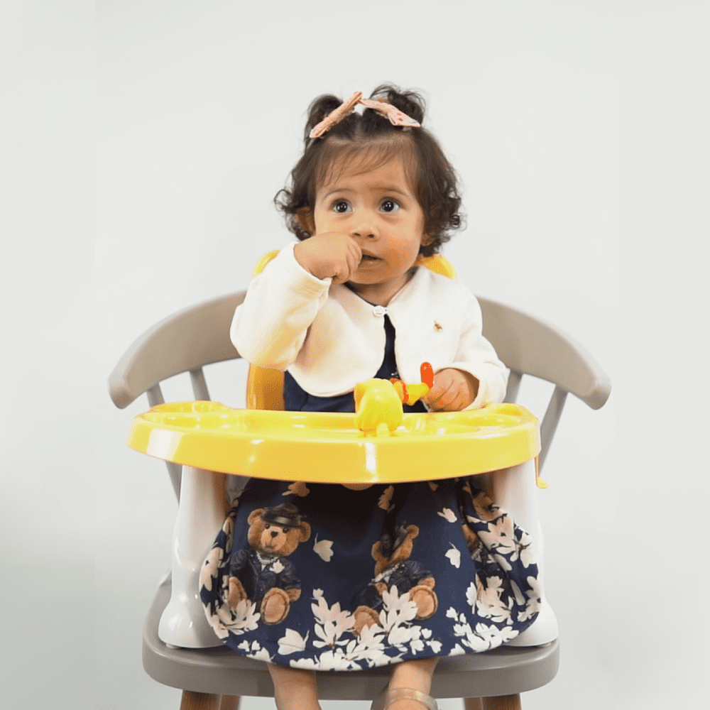 A Cadeira Ursinho é ideal para que o bebê possa participar de todas as refeições em família!