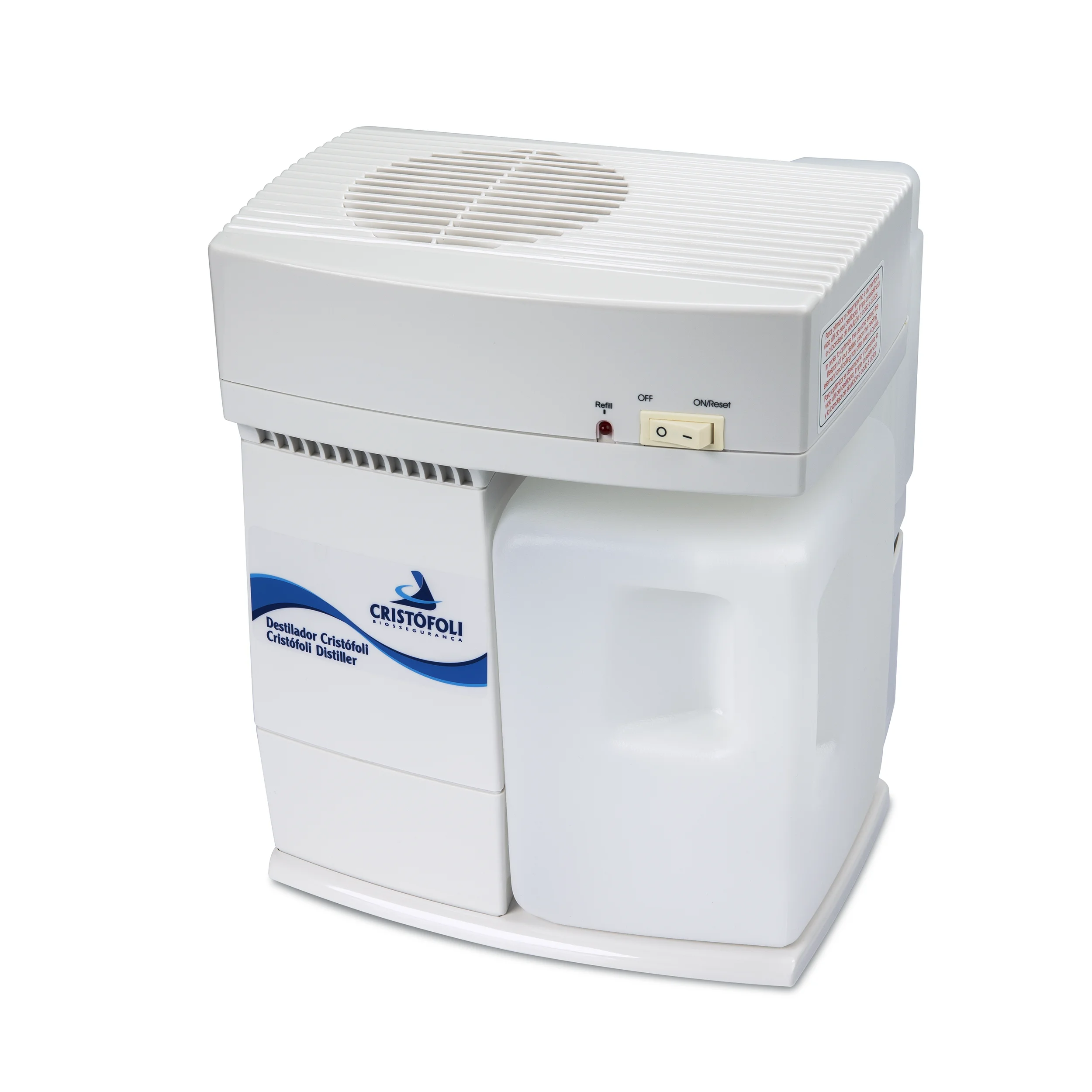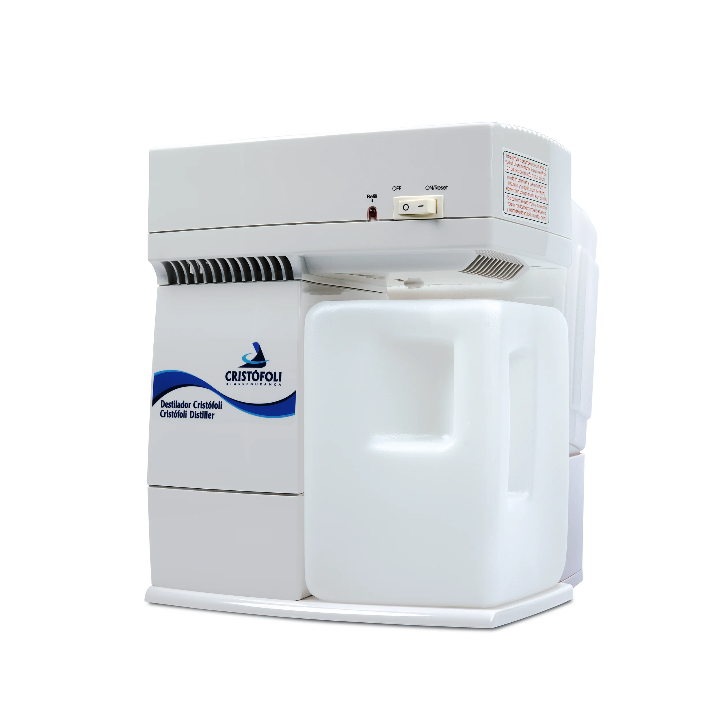 Equipamento desenvolvido para destilar água para uso em autoclaves de esterilização a vapor ou qualquer outra aplicação onde seja necessária a utilização de água destilada. A utilização de água destilada em autoclaves aumenta a sua vida útil.