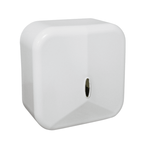 Dispenser plástico de parede para papel higiênico. Com visor de nível e trava de segurança.