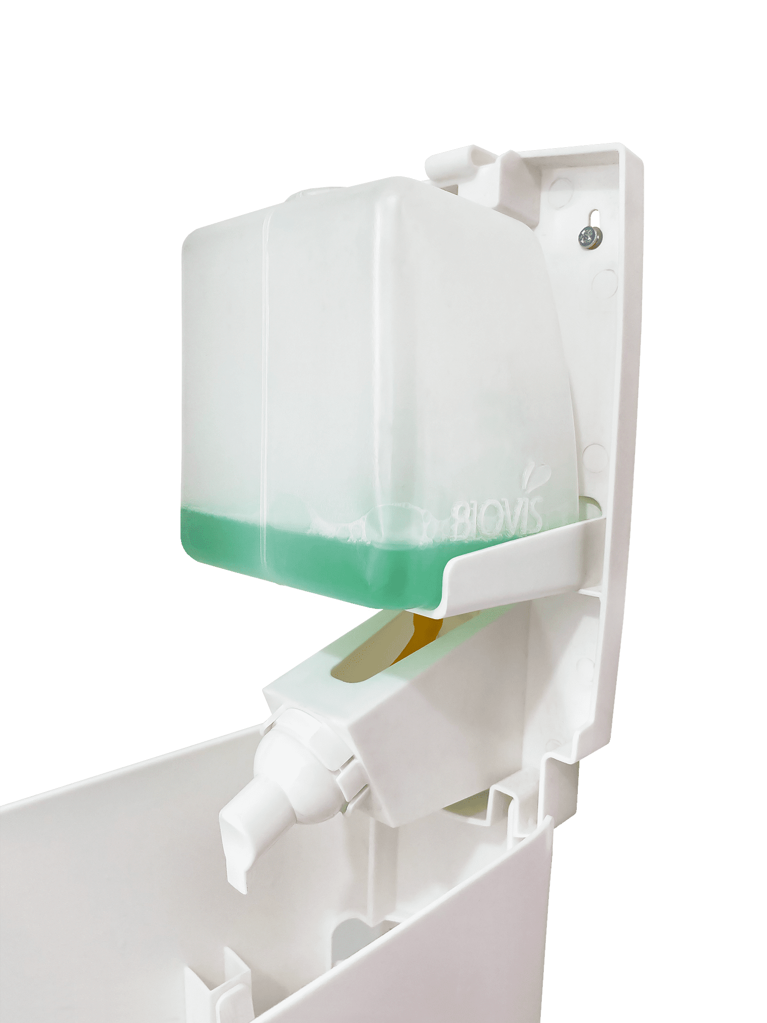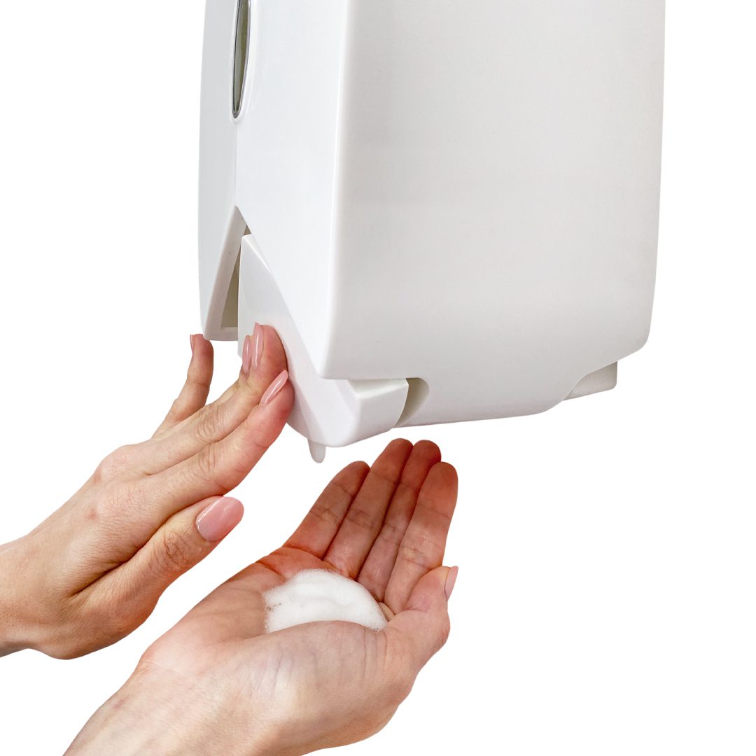 Dispenser plástico para sabonete em espuma. Prático e compacto, pode ser utilizado em qualquer ambiente!