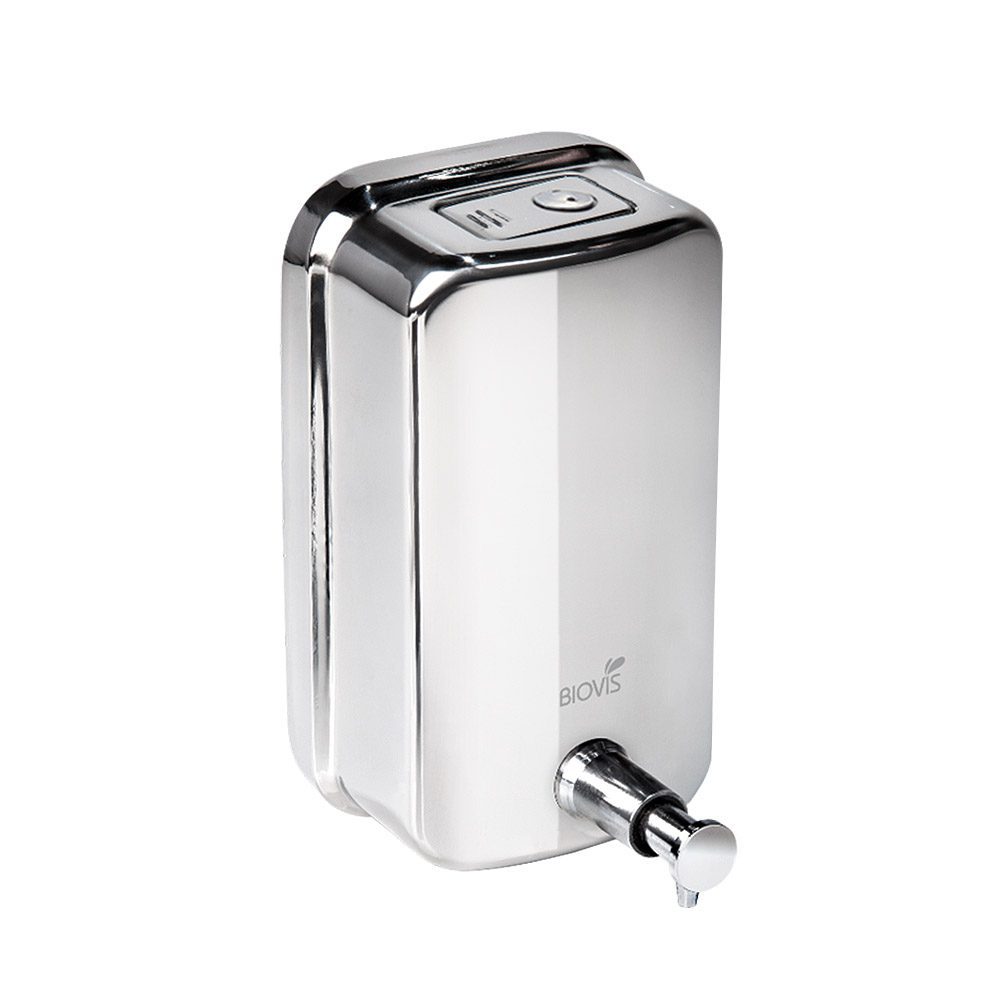 Dispensador manual de sabonete líquido ou álcool em gel, em aço inox de alta qualidade.
