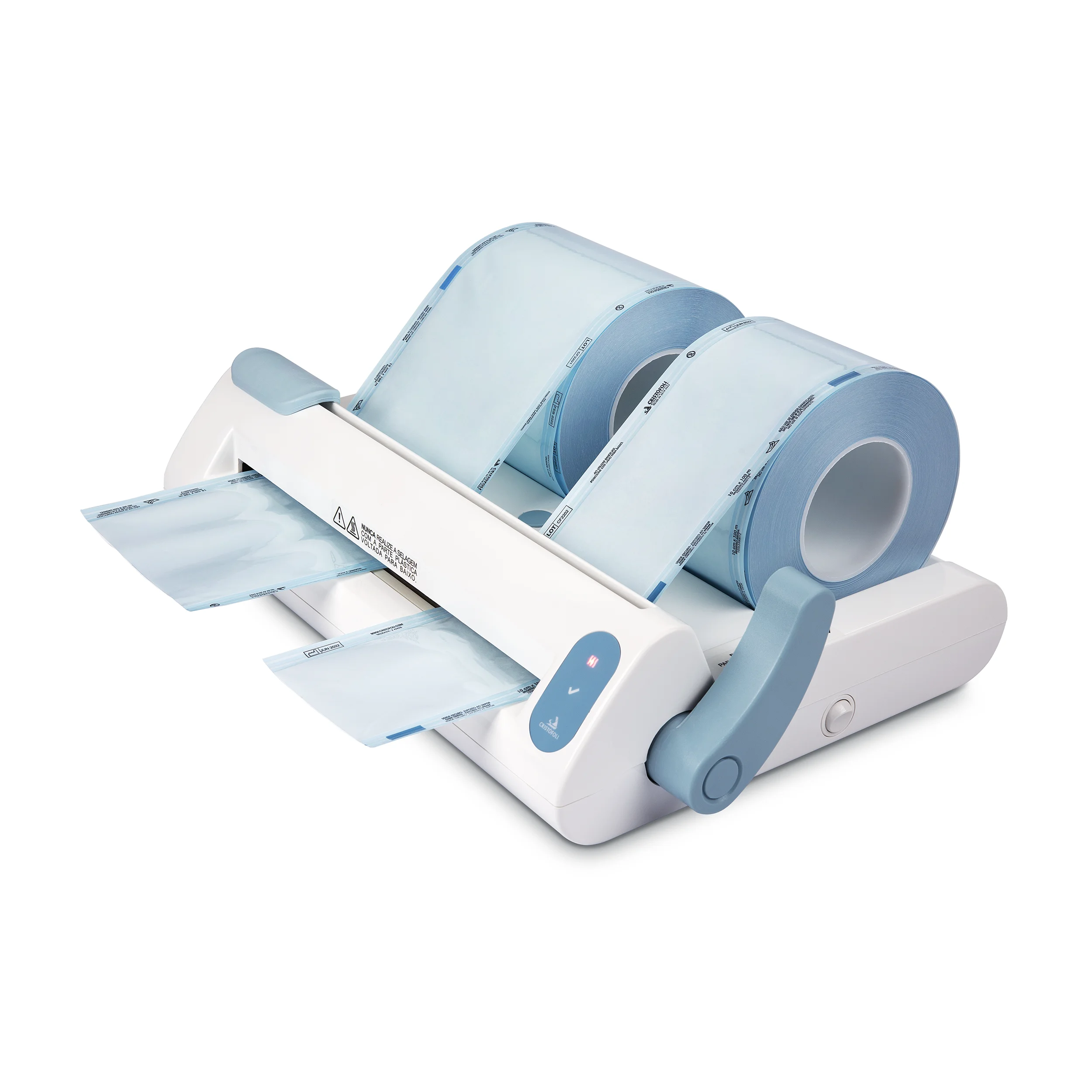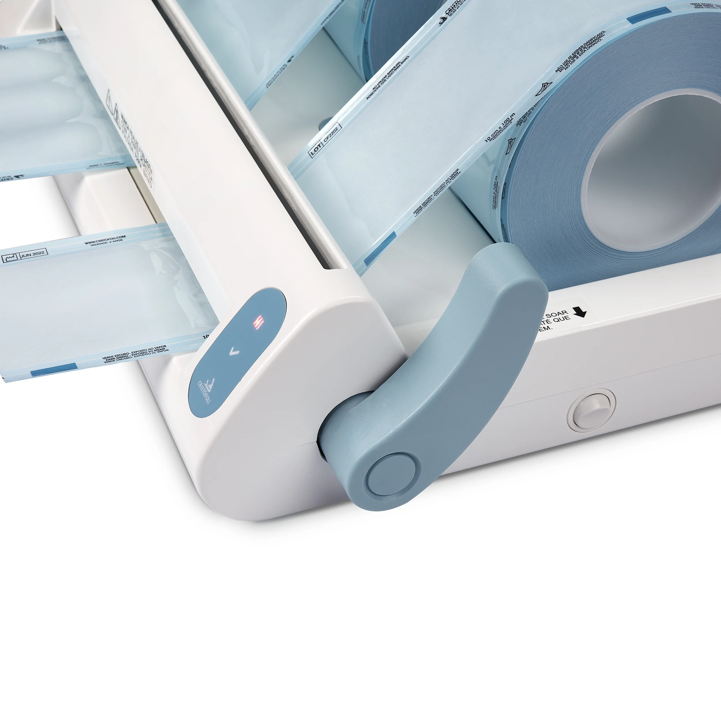 Seladora desenvolvida para selagem de embalagens (papel/plástico) próprias para esterilização em autoclaves a vapor.