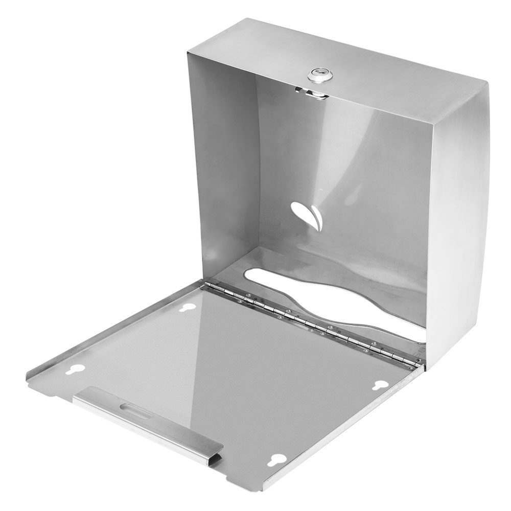 Dispensador manual em Aço Inox Escovado para papel toalha interfolhado. Com visor e chave.