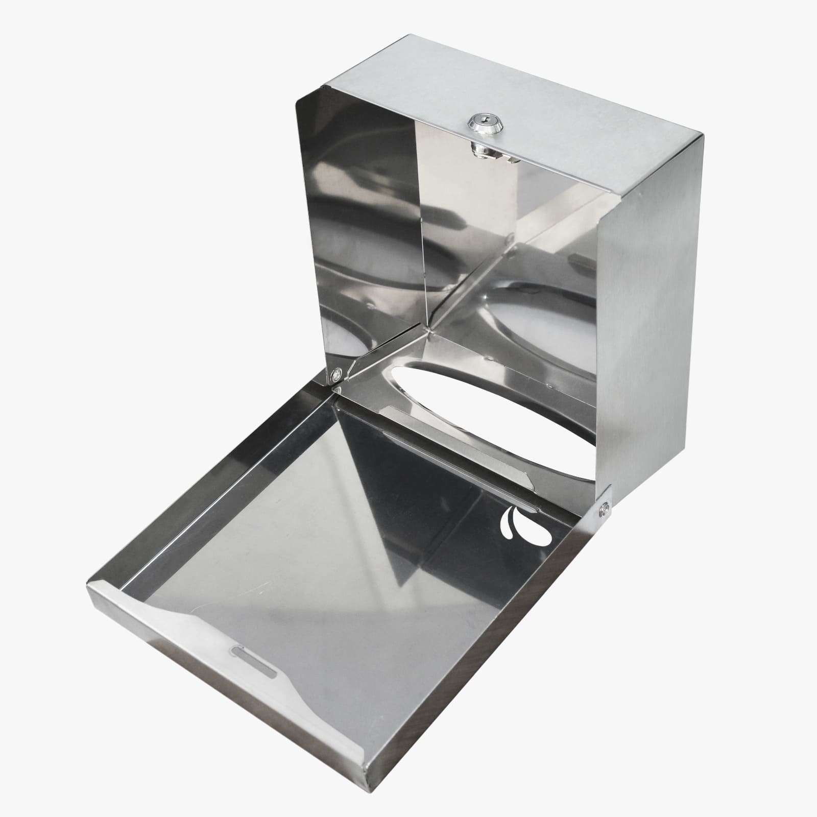 Dispensador manual em Aço Inox Escovado para papel toalha interfolhado. *Com visor e chave.